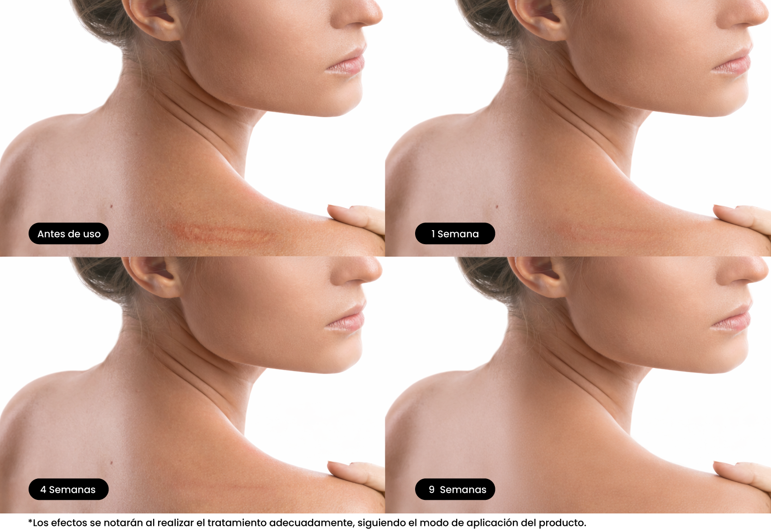 Ayuda a reducir visiblemente manchas y mejorar la apariencia de cicatrices con uso constante.